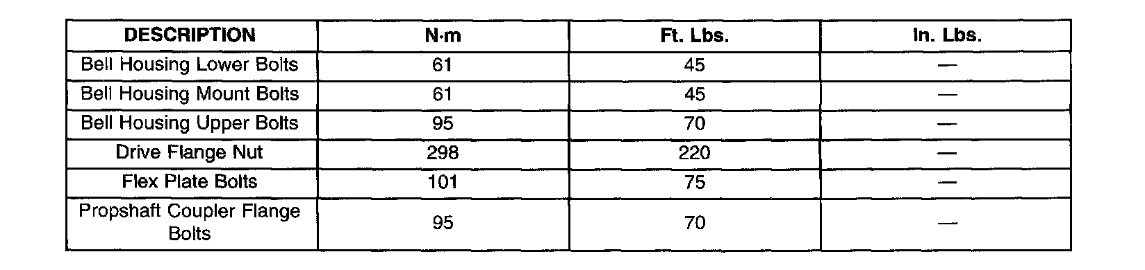 Specifications - Transaxle Bellhousing