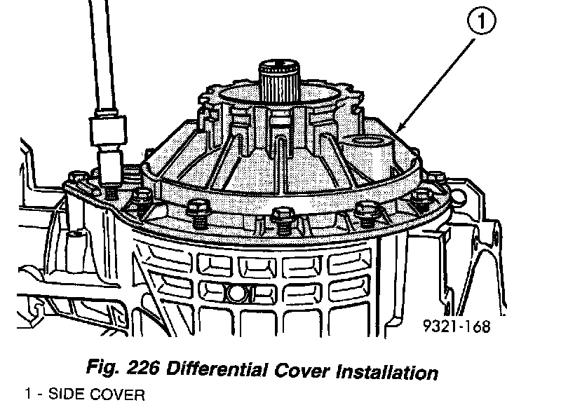7. Install differential cover (Fig. 226). Do not apply silicone sealant at this time. All bolts should be installed and tightened.