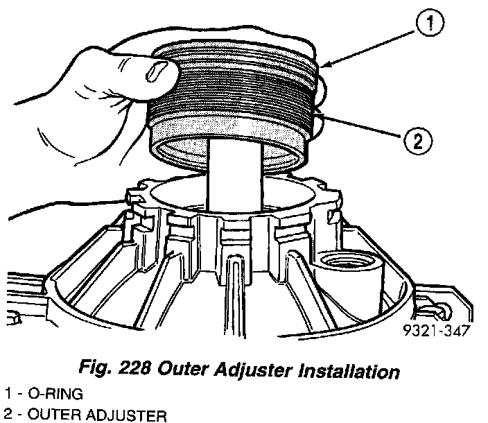 9. Screw on outer adjuster and tighten adjuster down finger tight (Fig. 228).