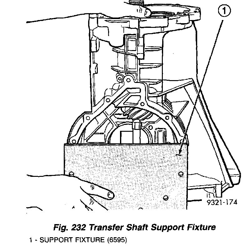 15. Install transfer shaft support fixture (special tool 6695) (Fig. 232).