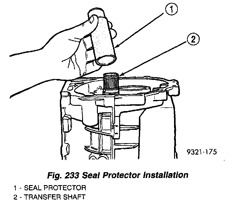 16. Install transfer shaft seal protector (special tool 6592) (Fig. 233). Apply thin film of gear oil to protector.