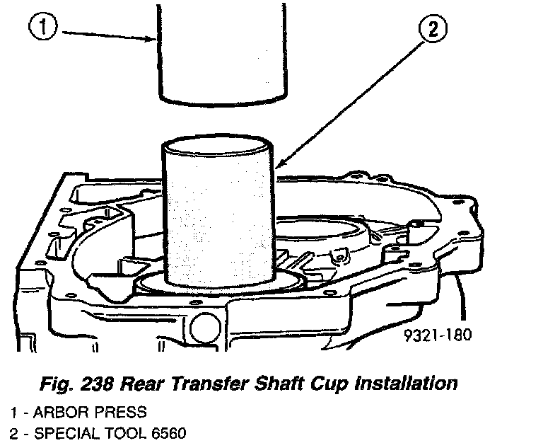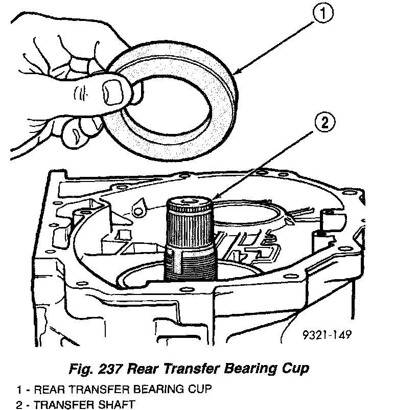 20. Install rear transfer shaft cup into case (Fig. 237).