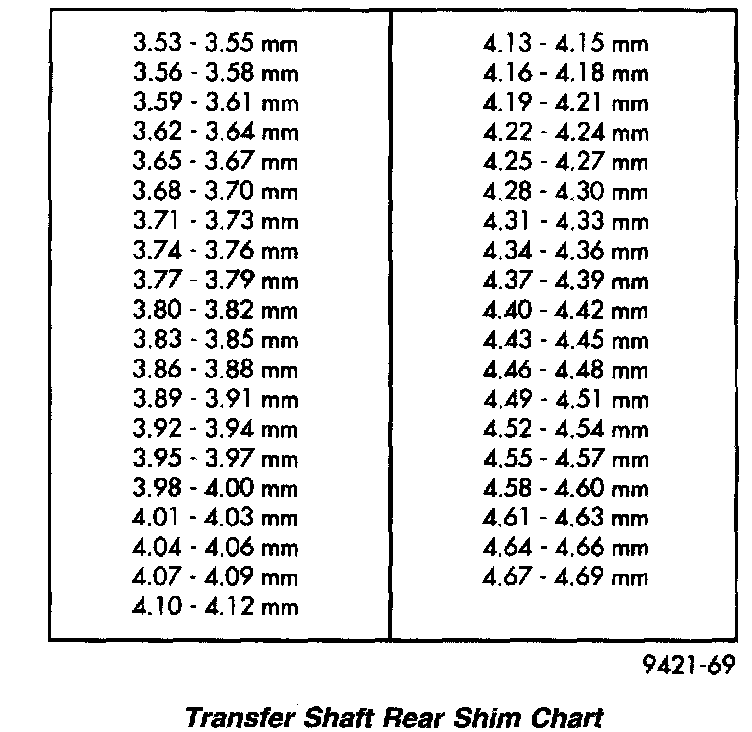 CAUTION: Failure to set the transfer shaft turning torque correctly may cause transfer shaft bearings or seals to fail. Be sure transfer shaft does not have end play. If end play exists, install a thinner preload shim.