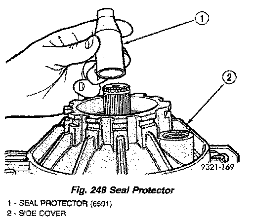 34. Install seal protector (special tool 6591) on shaft (Fig. 248).