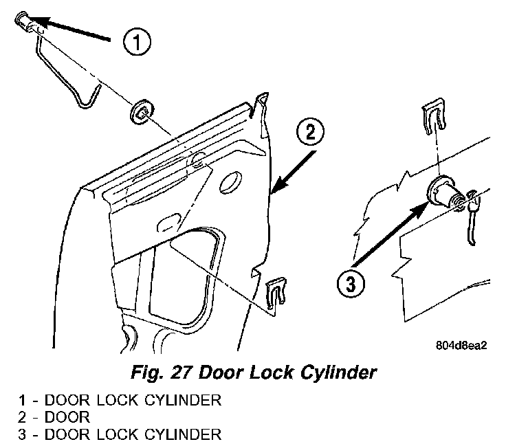 2. Remove clip attaching lock cylinder to outside door panel (Fig. 27).