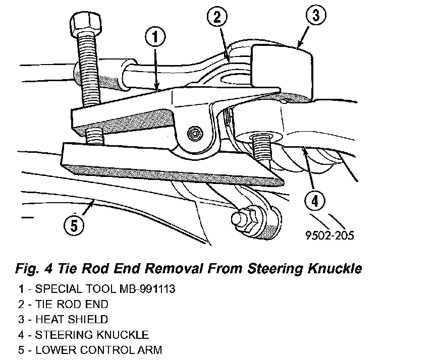 6. Remove the tie rod end from the steering knuckle arm, using Remover, Special Tool MB-991113.