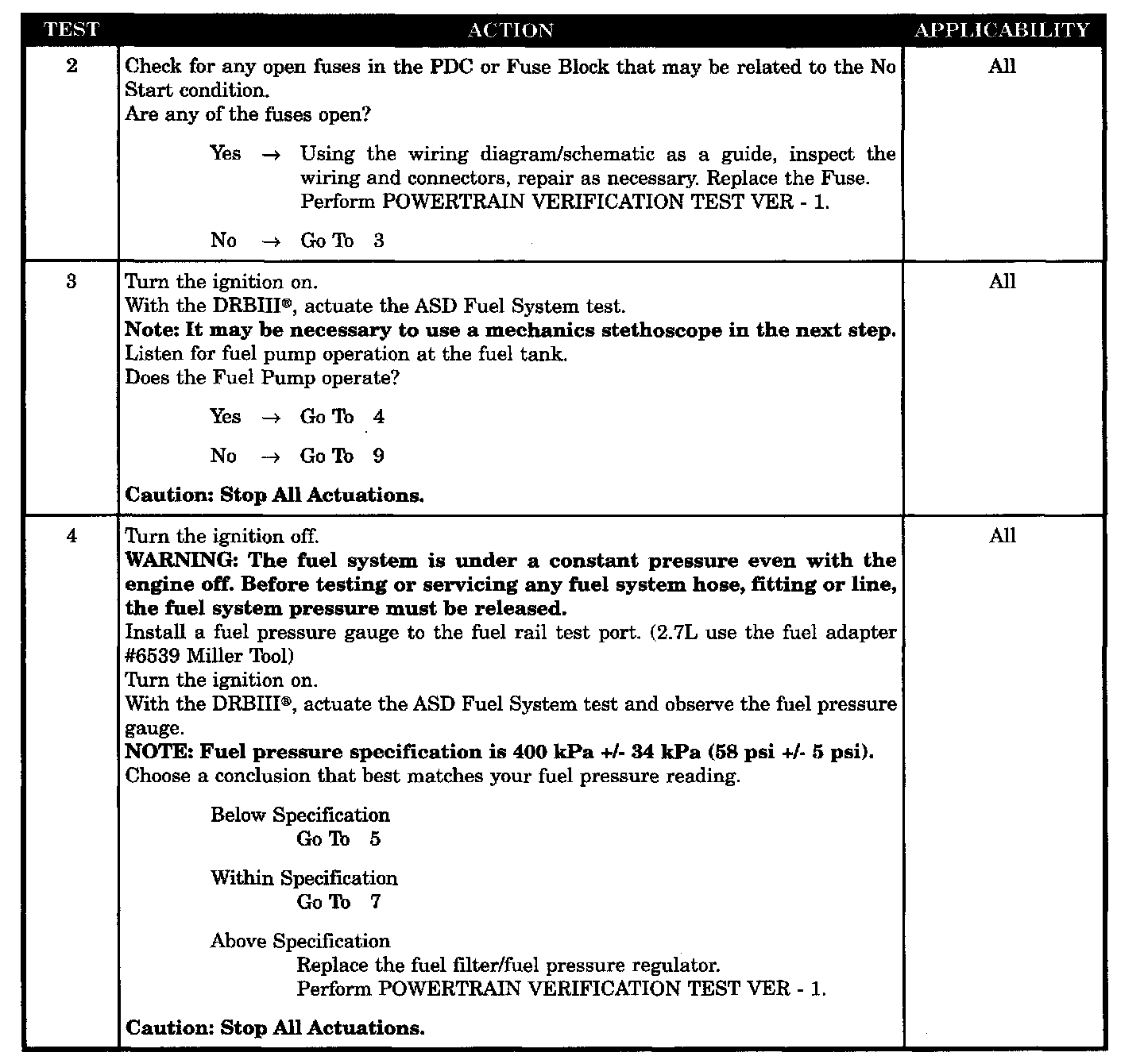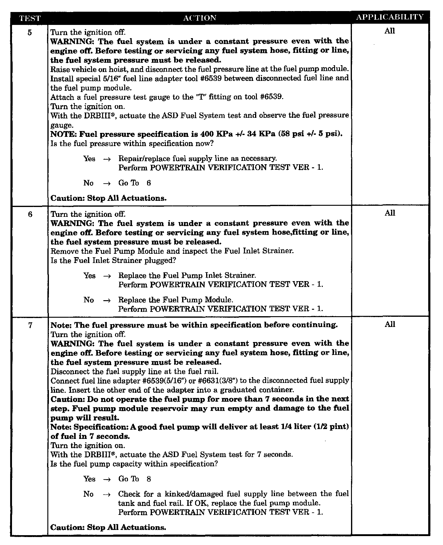 - Fuel Pump Capacity (Volume) Out Of Specs