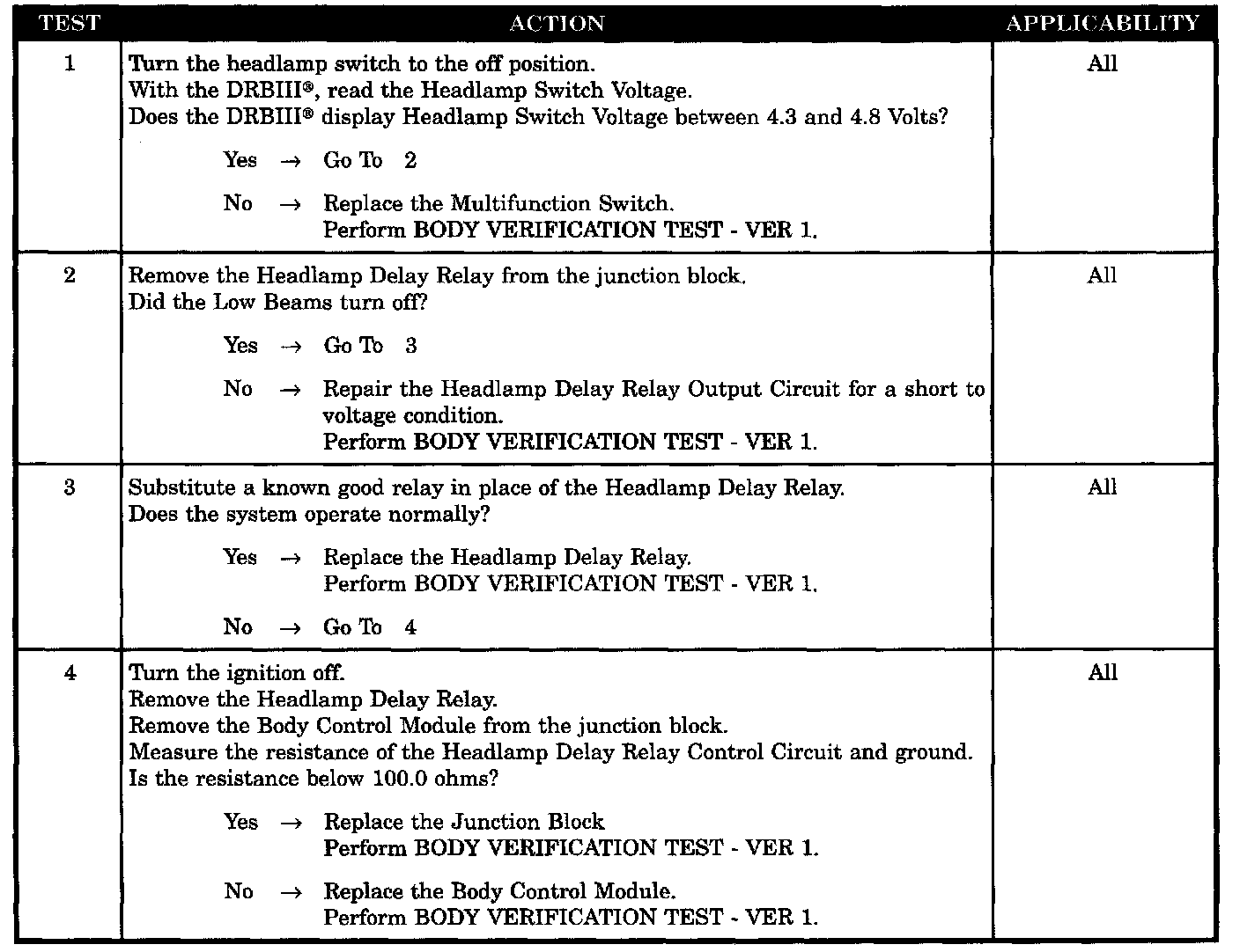 LOW BEAM HEADLAMPS WILL NOT TURN OFF