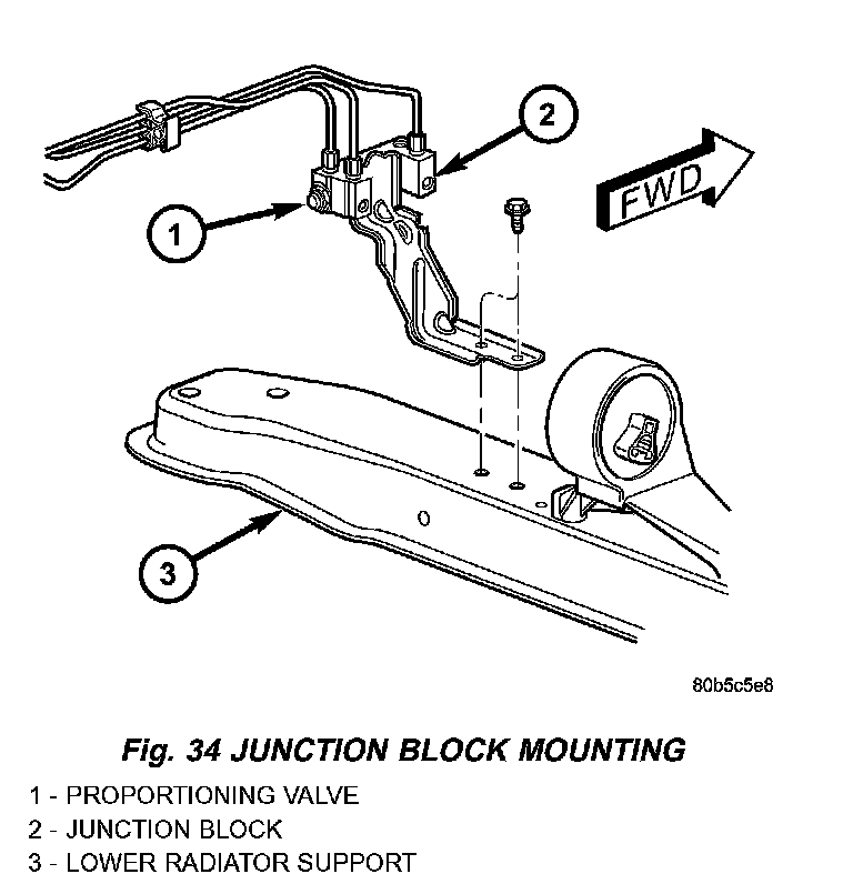 6. Remove the four chassis brake tubes going to each brake, mounted across the front top of the junction block .