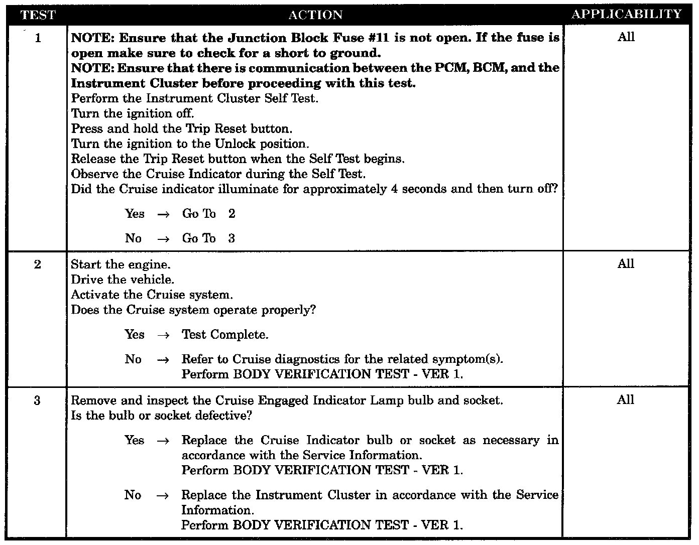 CRUISE ENGAGED INDICATOR INOPERATIVE