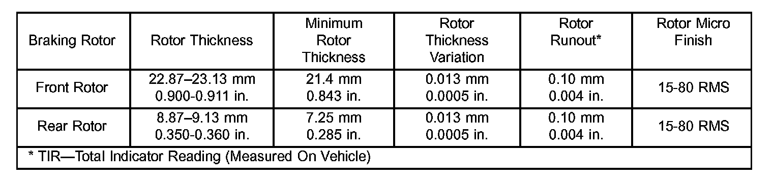 NOTE: All rotors have markings for minimum allowable thickness cast on an unmachined surface of the rotor.