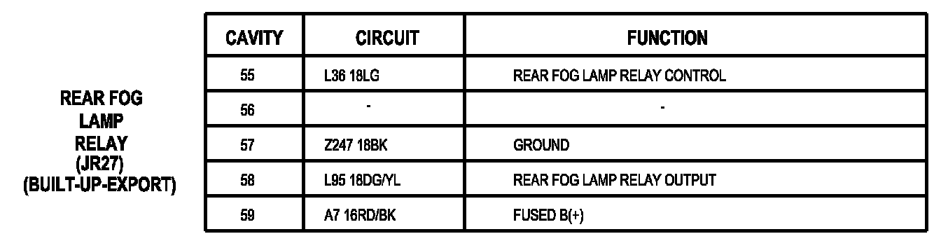 Rear Fog Lamp Relay (JR27) (Built-Up-Export):