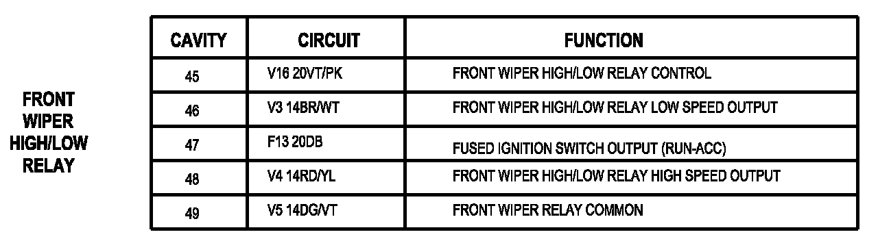 Front Wiper High/Low Relay: