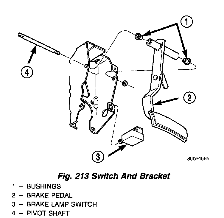 REMOVAL1. Remove the brake lamp switch from its bracket. The brake lamp switch is removed by depressing and holding the brake pedal while rotating brake lamp switch in a counter-clockwise direction approximately 30 degrees. Pull the switch rearward and remove it from its mounting bracket.