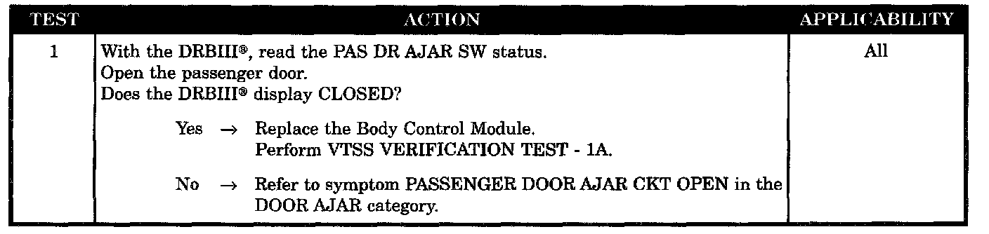 VTSS Does Not Trip From Passenger Door
