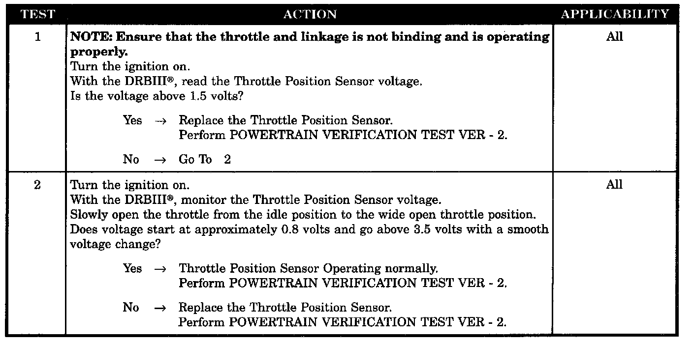 Checking the Throttle Position Sensor