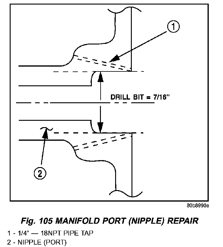 1. File or sand the remaining port back until a flat surface is obtained (plane normal to nipple (port) axis).