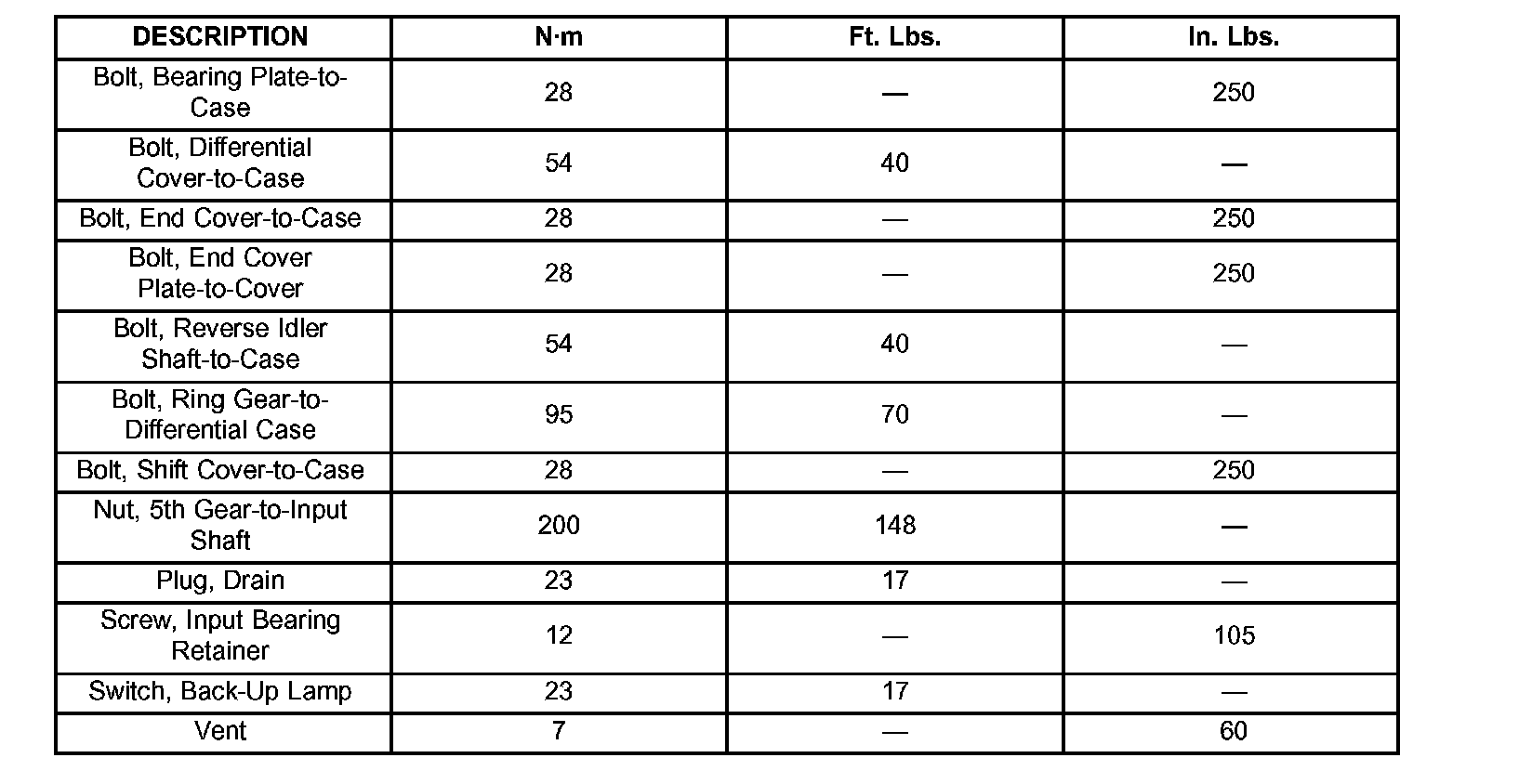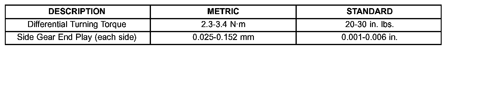 TORQUE SPECIFICATIONS