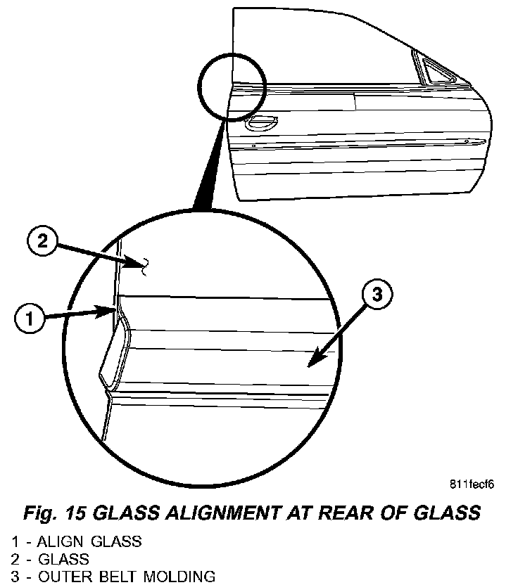7. Raise glass to top of travel and verify positioning. (Fig. 14) and (Fig. 16).