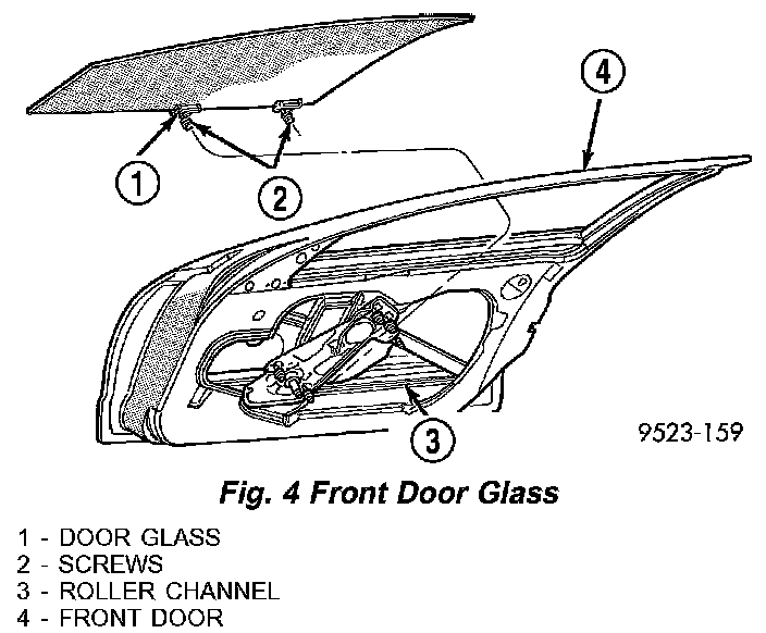 6. Raise glass upward and out of the opening at top of door (Fig. 4).