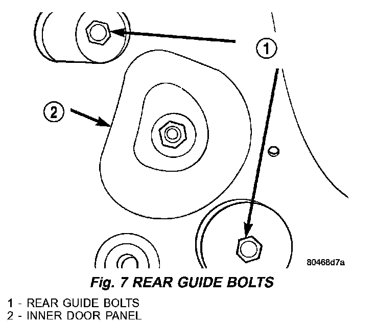 7. Remove bolts attaching rear guide plate to door glass (Fig. 7).
