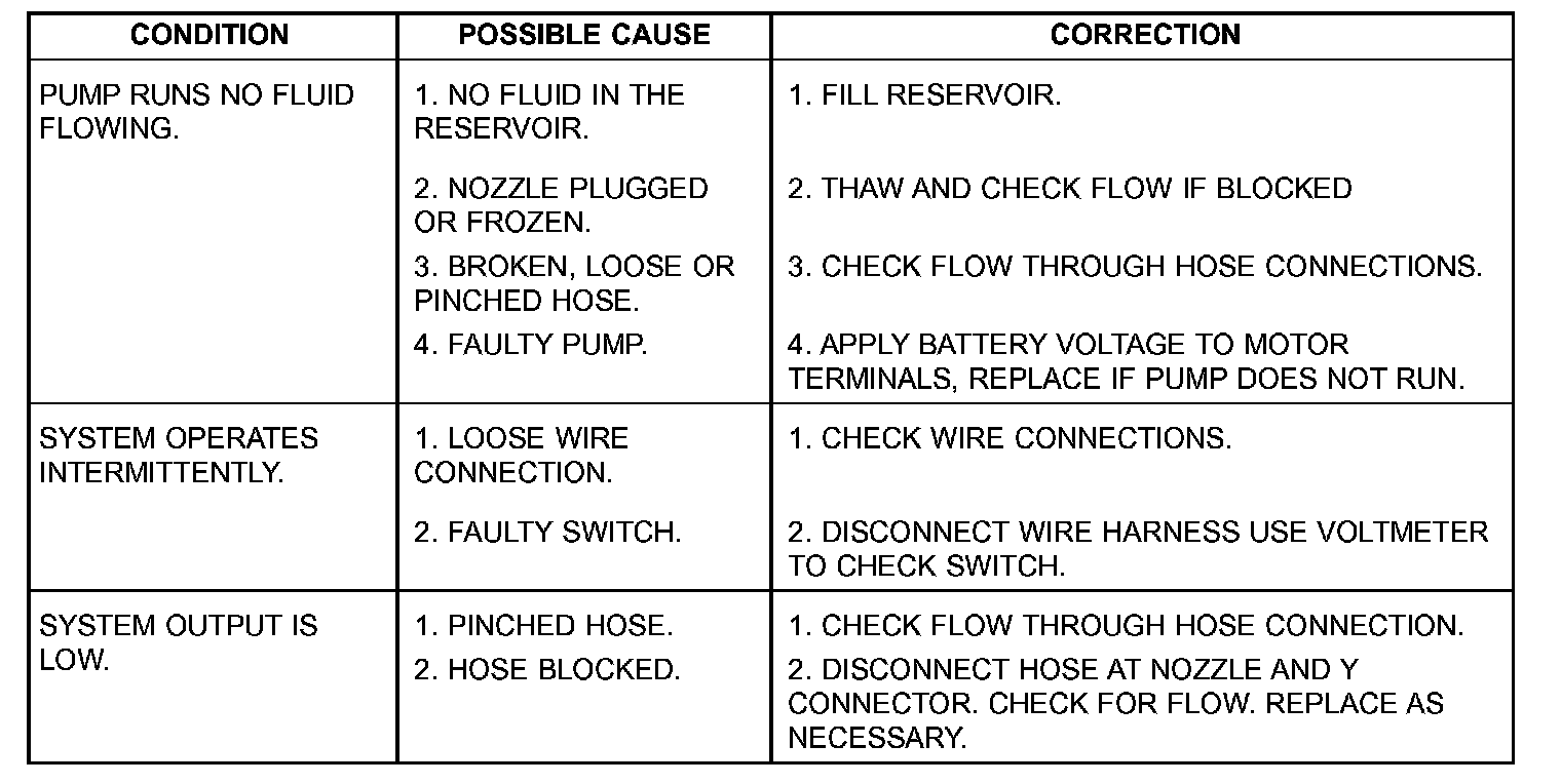 Whenever a windshield washer malfunction occurs, first verify that the windshield washer wire harness is properly connected to all connectors before starting normal diagnosis and repair procedures. Refer to the WINDSHIELD WASHER DIAGNOSIS table.