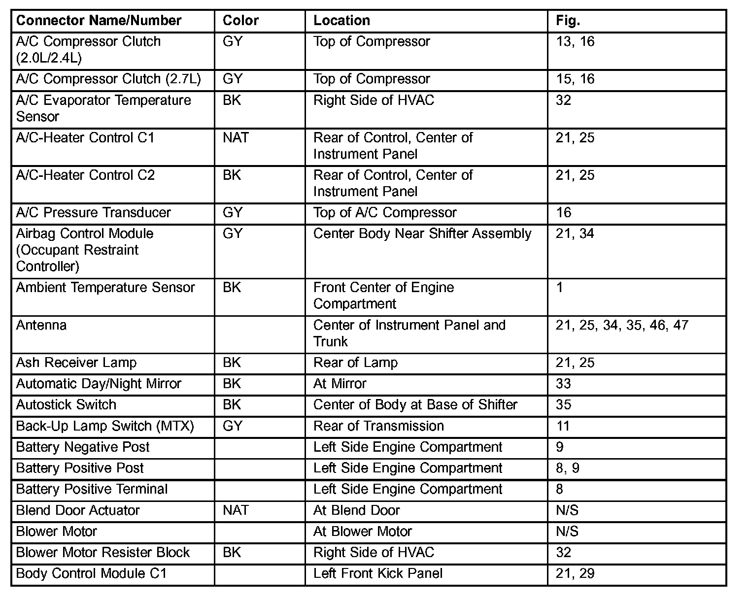 Connector Locations (Part 1 Of 8):