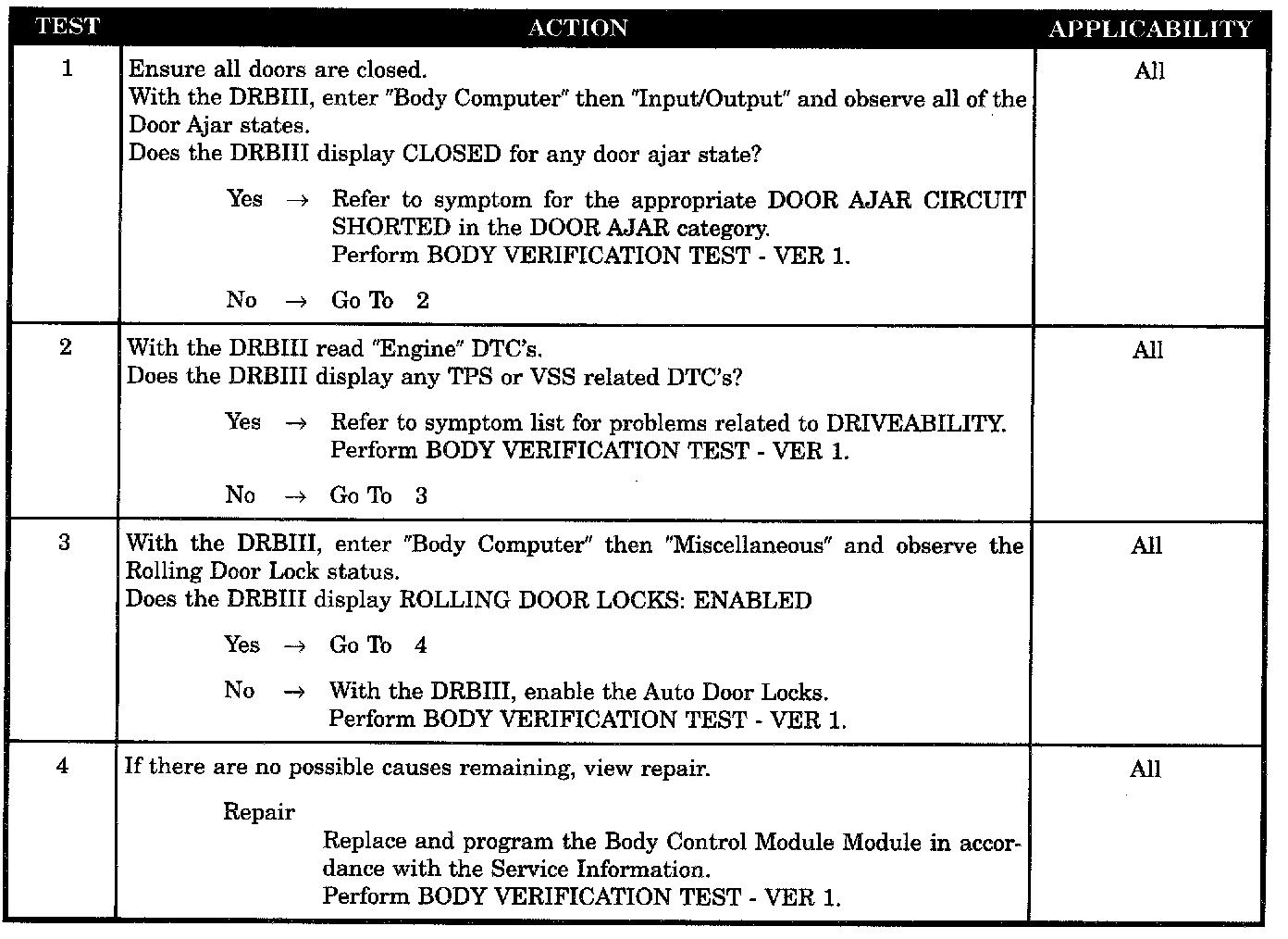 Automatic (Rolling) Door Locks Inoperative