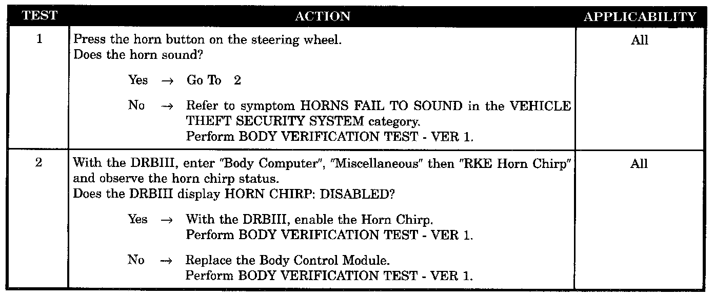RKE HORN CHIRP INOPERATIVE