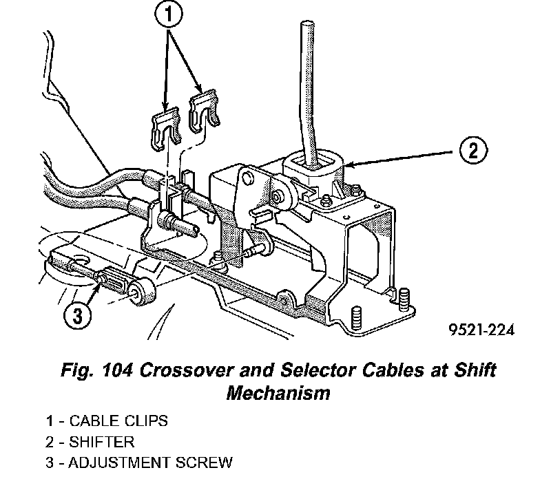 a. Loosen adjusting screw on crossover cable at shifter (Fig. 104).