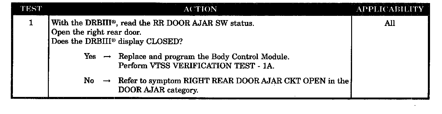 Check DRBIII for right rear door ajar response