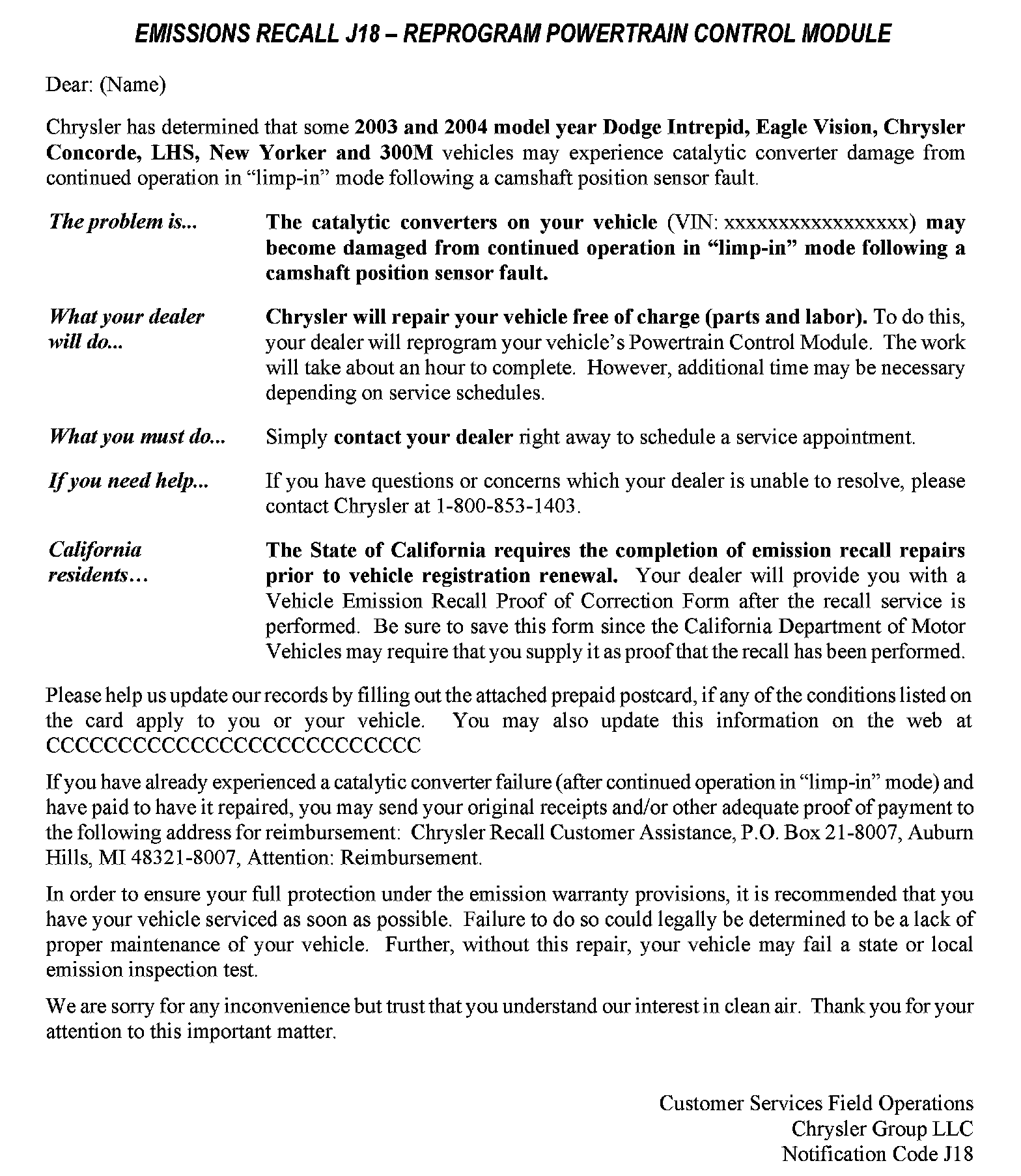 Recall - PCM Update For Catalytic Converter Failure