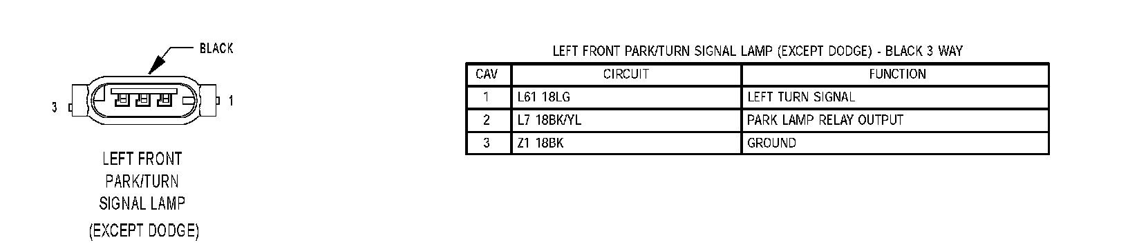 Left Front Park/Turn Signal Lamp (Except DODGE):