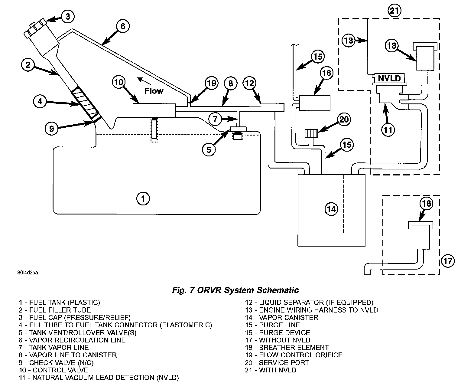On-board Refueling Vapor Recovery (ORVR) System Schematic and components.