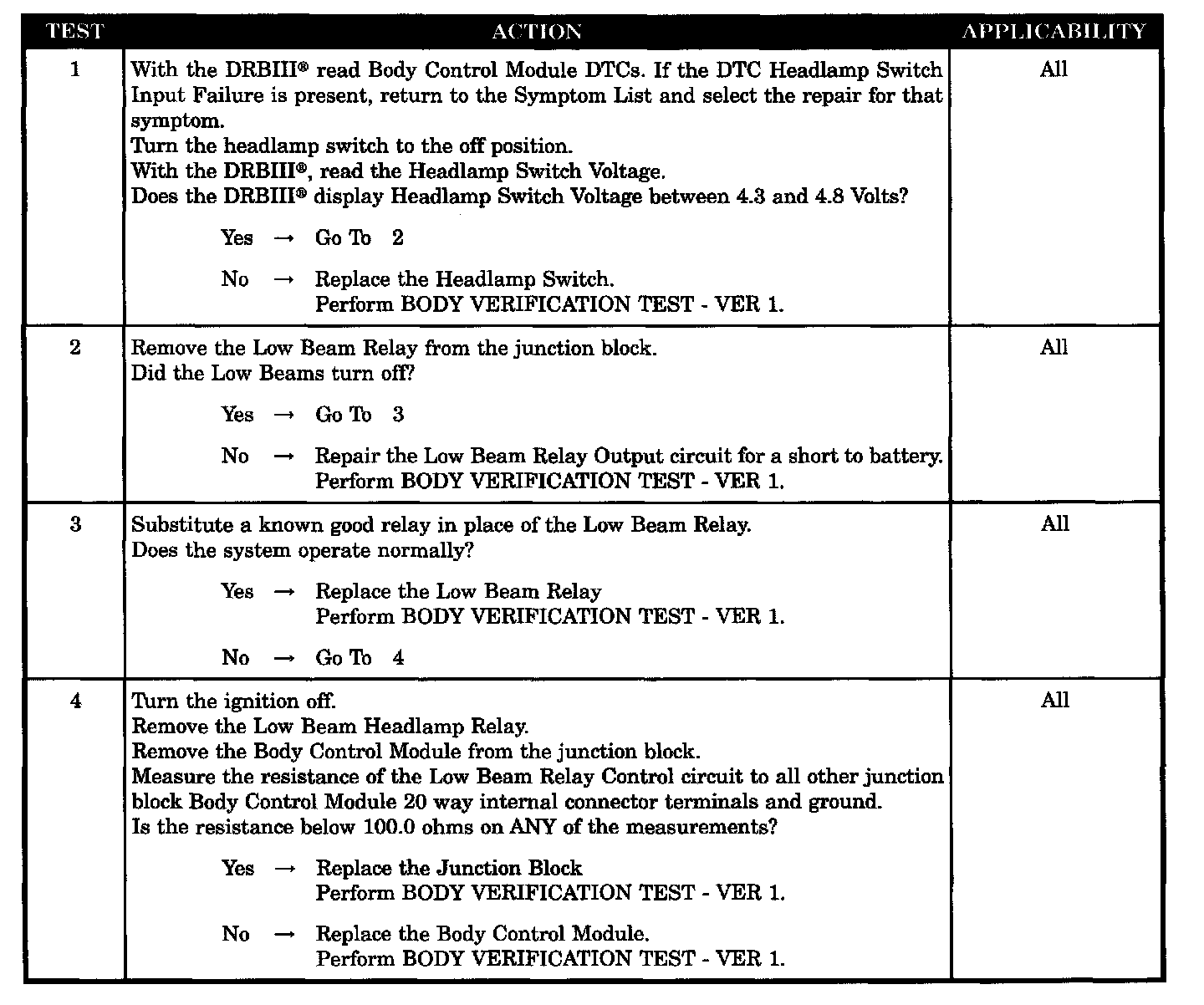 LOW BEAM HEADLAMPS WILL NOT TURN OFF