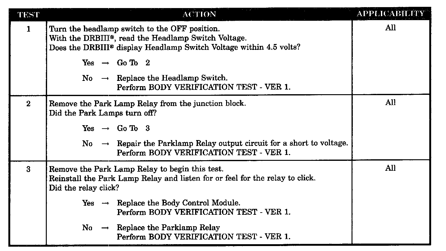 PARK LAMPS WILL NOT TURN OFF