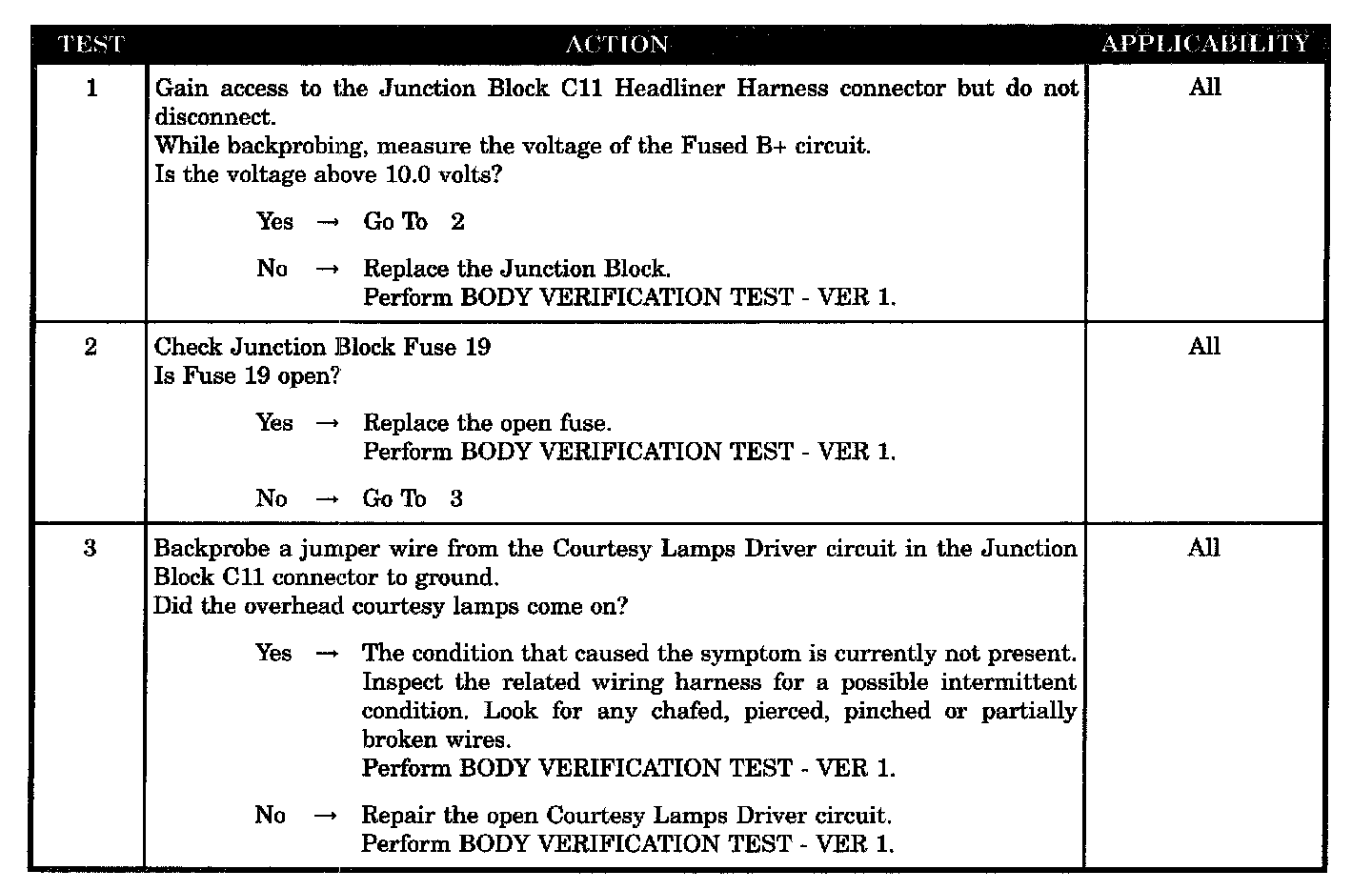 COURTESY LAMPS INOPERATIVE - OVERHEAD LAMPS