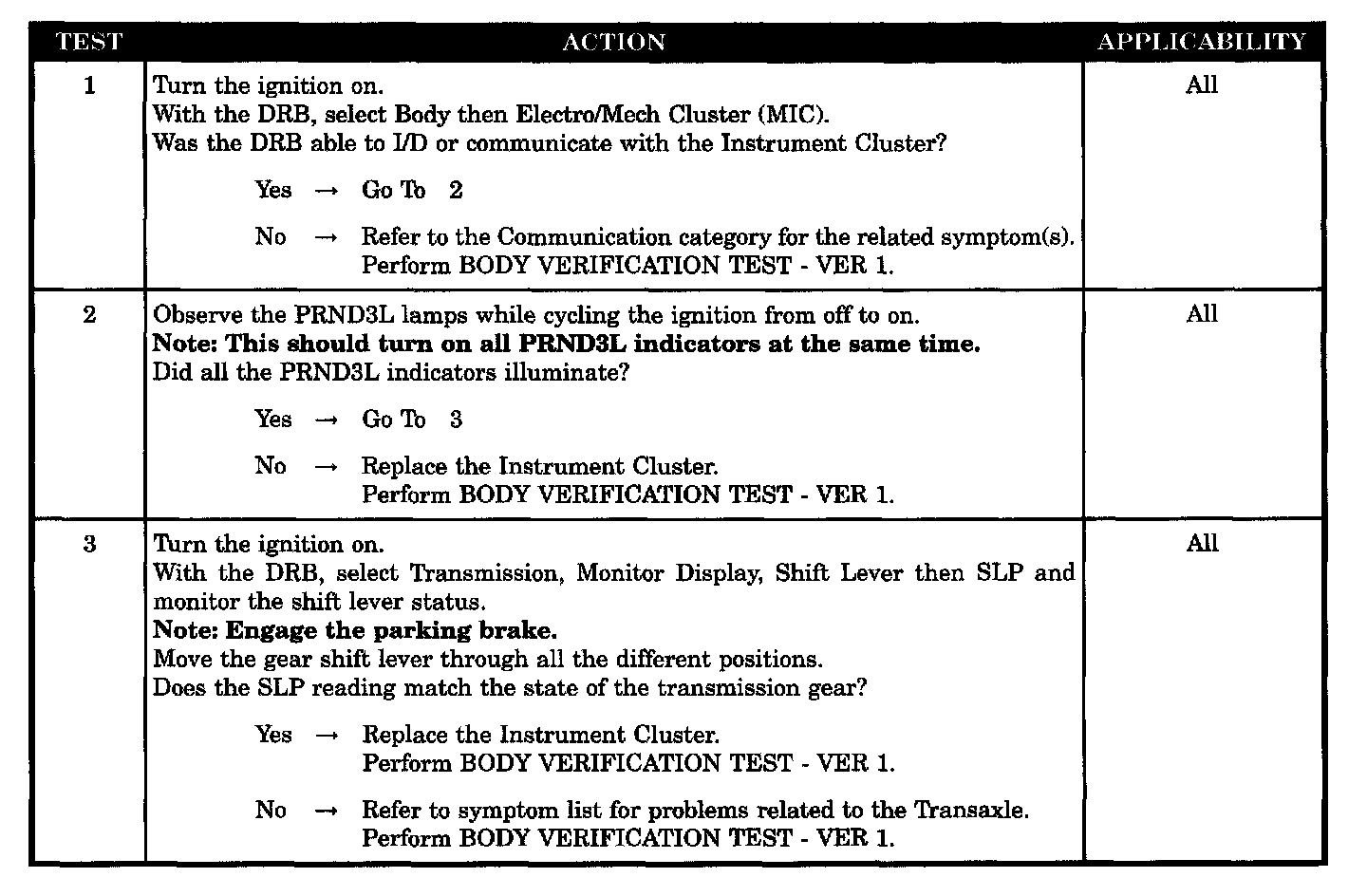 - Observe the PRND3L lamps with the ignition on