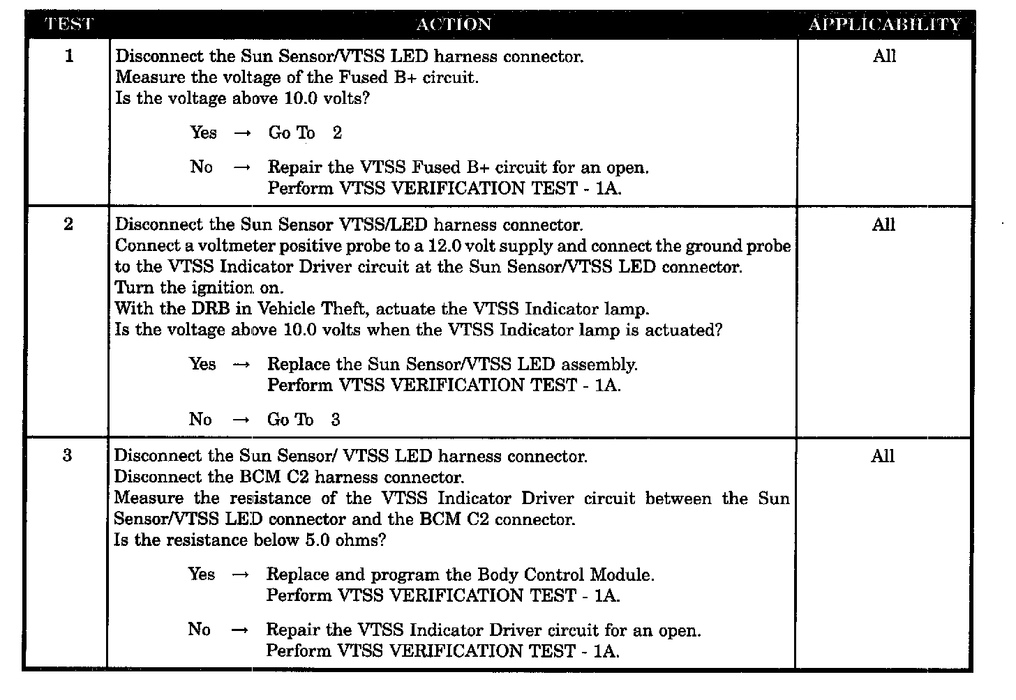 VTSS INDICATOR INOPERATIVE