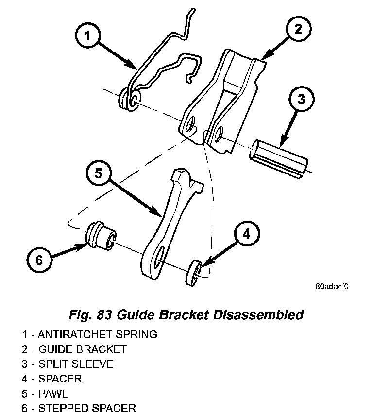 6. Assemble guide bracket assembly as shown in (Fig. 83) (Fig. 84).
