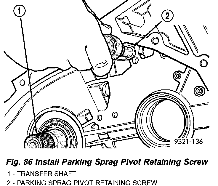 8. Install park sprag pivot retaining screw (Fig. 86) and torque to 5 Nm (45 inch lbs.).