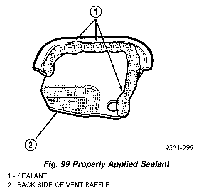 14. Apply Mopar ATF RTV (MS-GF41) as shown in (Fig. 99). Install main sump baffle to transaxle case (Fig. 100) and torque screw to 5 Nm (45 inch lbs.).