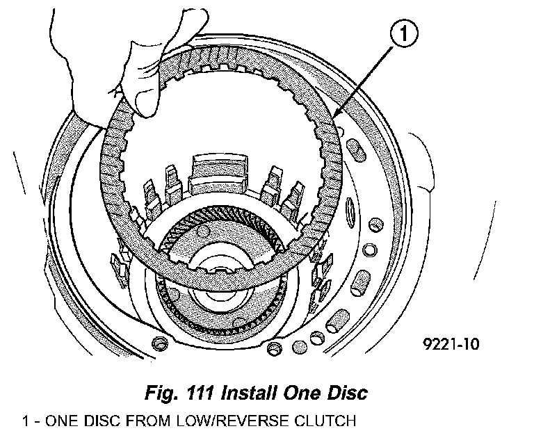 25. Install one low/reverse clutch disc (Fig. 111).