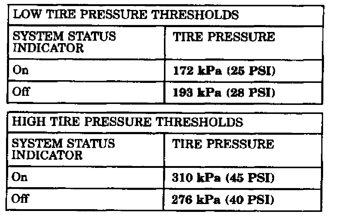 The EVIC will monitor the tire pressure signals from the four (or five) tire sensors and determine if any tire has gone below the low pressure threshold or raised above the high pressure threshold.