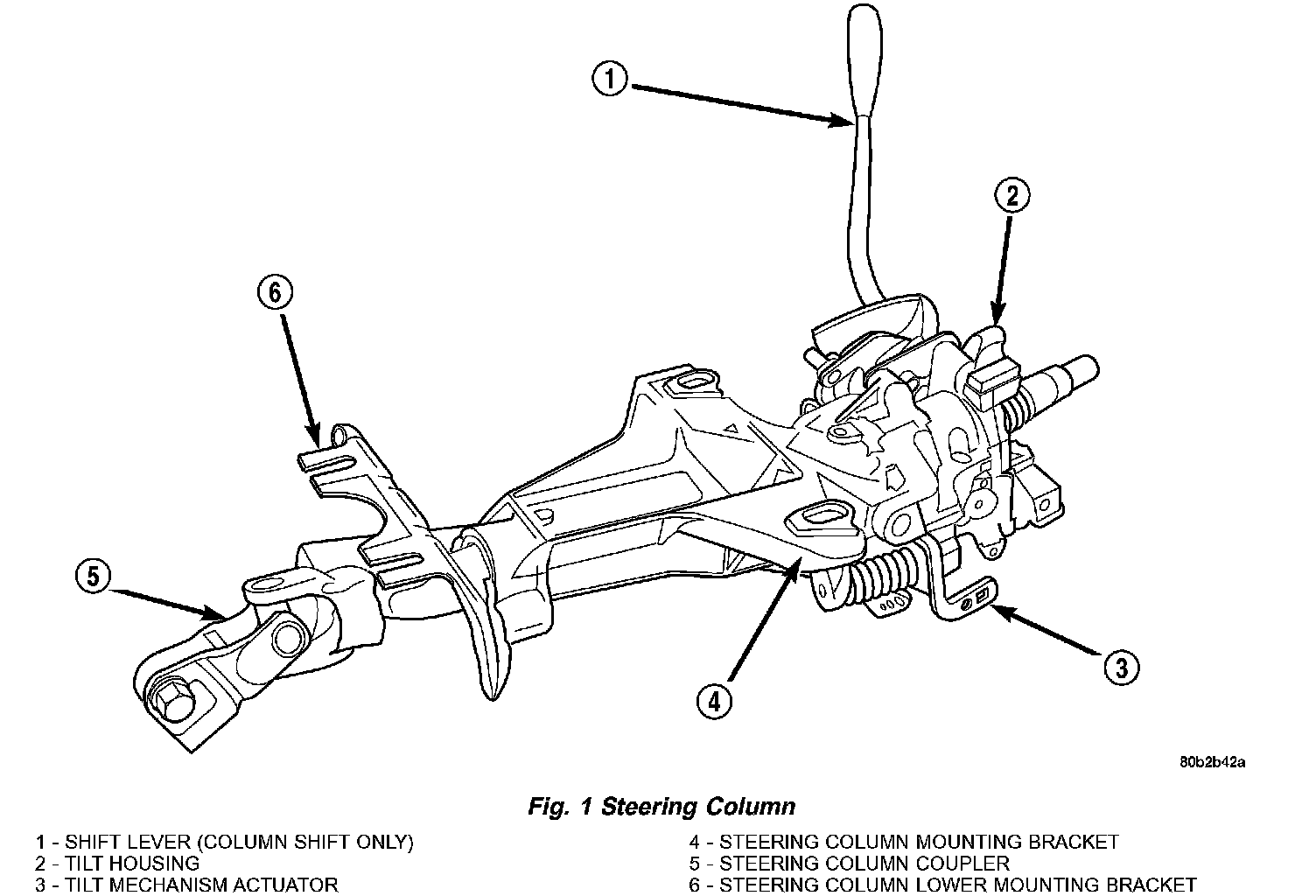 This vehicle uses a tilt-type steering column. Two styles are available, one is for floor shift vehicles and the other is for column shift vehicles.