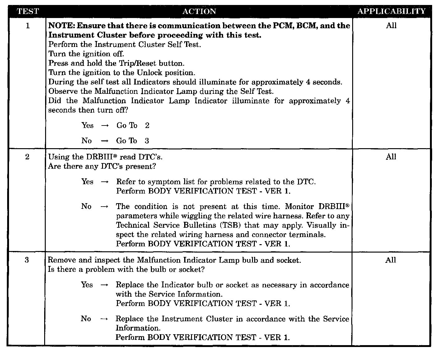 MALFUNCTION INDICATOR LAMP NOT OPERATING PROPERLY