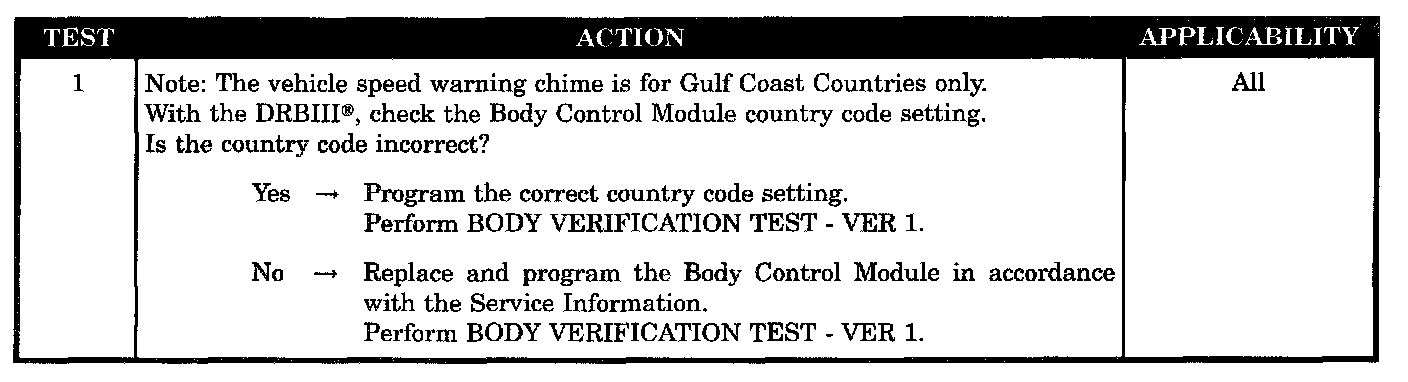 Vehicle Speed Warning Chime Problem