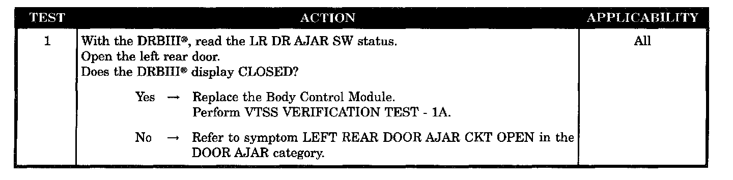 VTSS DOES NOT TRIP FROM LEFT REAR DOOR