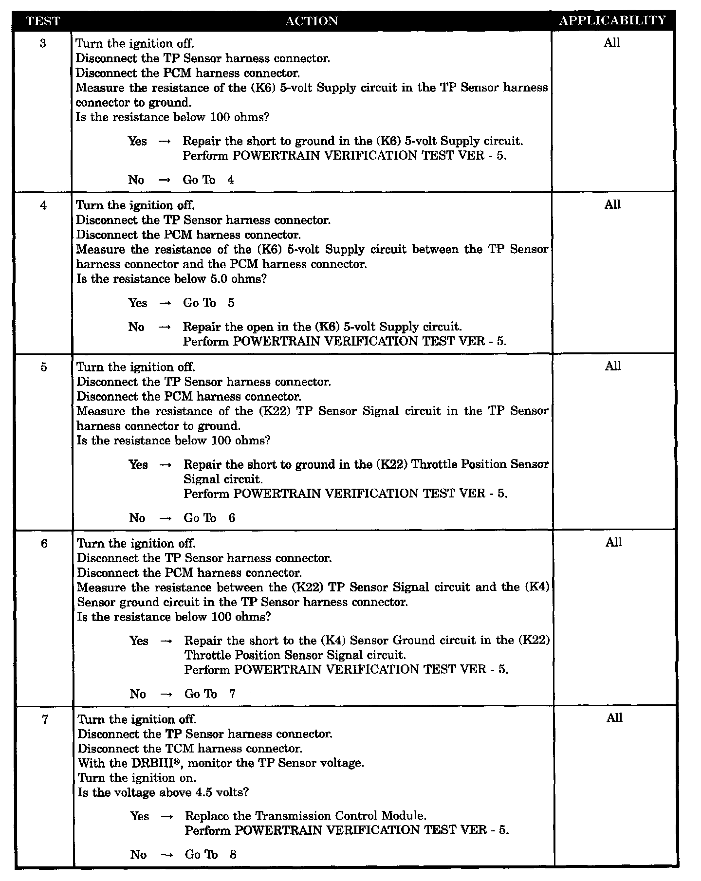 - (K22) TP sensor signal circuit shorted to (K4) sensor ground circuit