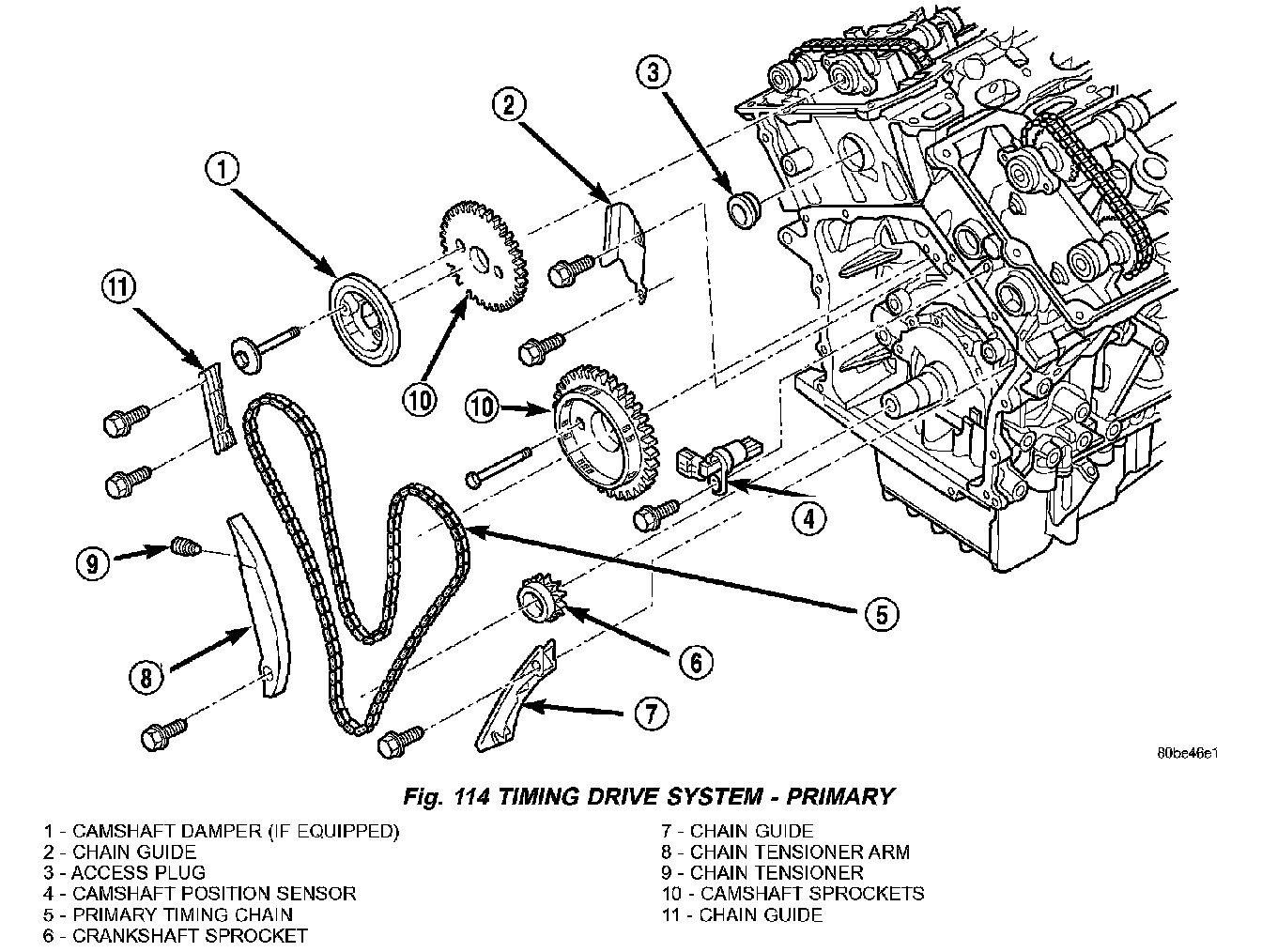 8. Align timing (plated) link to the crankshaft sprocket timing mark (Fig. 116).
